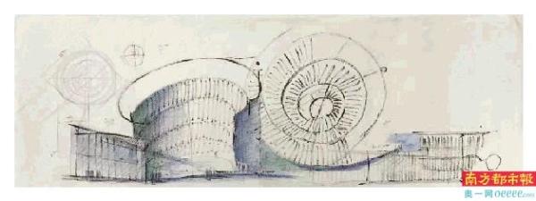 广州大剧院:出自世界著名设计师扎哈·哈迪德之手。其主体建筑为黑白灰色调的“双砾”,突破以往建筑的结构特点,外围护结构强烈的凹进凸出的不规则折面和内部大跨度、大悬挑、倾斜的剪力墙柱形成复杂的不规则建筑空间。