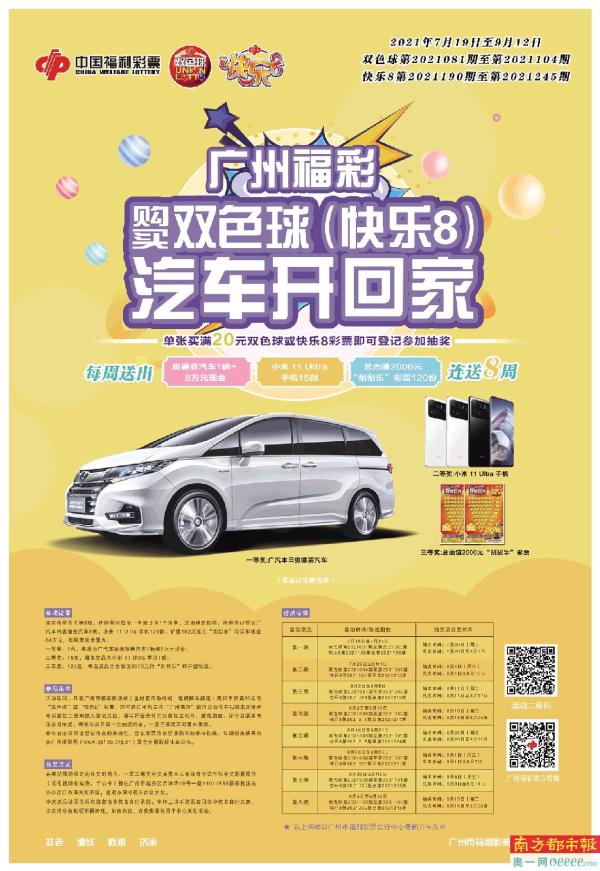 根据活动安排,第五期的一至三等奖抽奖结果已在全市各福彩投注站及广州福彩网(www.gzflcp.org.cn)公布。本期中奖彩民须在8月31日前凭中奖彩票原件及本人有效身份证件到广州市福利彩票发行中心(越秀区西湖路99号1楼44011888投注站办公窗口)办理兑奖手续,逾期未办理者将视为自动弃奖。目前,活动还剩余3台汽车、45部手机等奖品等待送出,第六期抽奖仪式将在9月1日上午举办,该期的有效抽奖范围为双色球游戏第2021096期至2021098期,快乐8游戏第2021225期至2021231期。