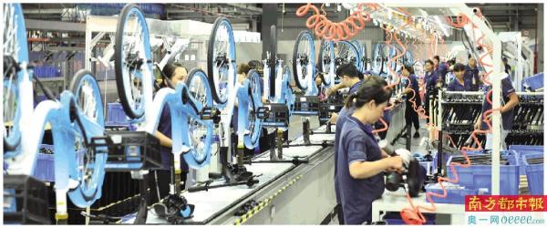 宋建新告诉南都记者,一辆29.2公斤的共享单车,从零部件到整车包装的供应商有83家,在广东地区开发了车架、前叉、门钣、扶叉等。“深圳、中山、佛山这些地区的自行车两轮供应链非常发达,目前单车供应商达到7家。在共享电单车领域,我们已经在寻找江门地区的供应链,做提前布局,也希望佛山工厂能够在当地持续深耕。”厂家正积极在佛山周边培养供应体系,致力在佛山打造一个两轮车生产制造的生态圈。