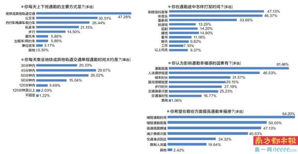 如何提高上下班通勤幸福感?超六成受访者希望缩短通勤时间,五成受访者希望缩短通勤距离,超四成受访者希望疏通路面拥堵。