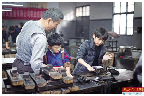 黄山市歙县,学员们体验国家级非物质文化遗产——徽墨制作。摄影/林斌