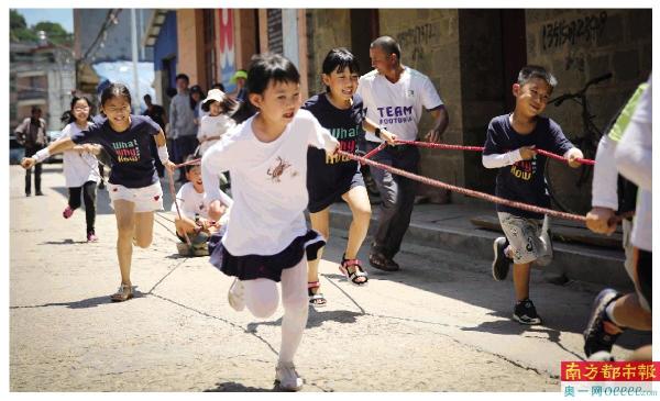 “乡土中国行”的学员们在体验非物质文化遗产——曳石。该活动相传为戚继光在闽东抗倭时传下。 摄影/苏邦星