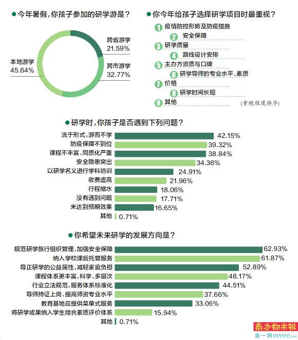 8月31日,广东省教育厅发布《关于实施初中学生综合素质评价的指导意见》(下称《意见》),其中明确研学实践将成为学生综合素质评价的组成部分。在刚刚结束的暑假,中小学生研学参与情况如何?疫情对研学游产生哪些影响,家长们希望未来研学如何发展?