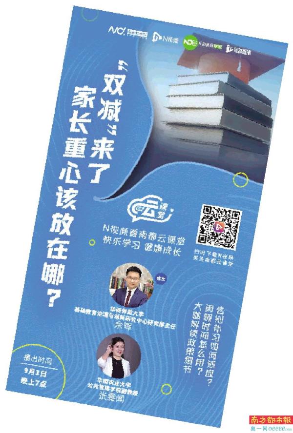 新学期南都云课堂从9月1日正式开讲,南都教育联盟邀请华南师范大学基础教育治理与创新研究中心研究部主任余晖、华南农业大学公共管理学院副教授张雯闻,围绕“双减”话题,深入讨论“疏”“堵”并重的政策组合拳能否真的起到减负效果?家长应该如何缓解自身的教育焦虑情绪?为数万名家长送上一堂解忧课。