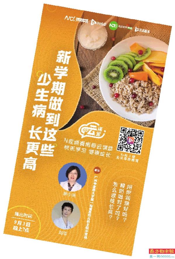 既关心“快乐学习”,也重视“健康成长”,9月3日南都云课堂推出新学期的第二堂课《新学期做到这些,少生病长更高》,邀请了广州中医药大学第一附属医院儿科刘华、胡小英两位主任中医师,结合多年儿科临床经验,分享秋季保健知识,涵盖饮食调理、流行病预防、生长发育热点问题,收获了近2万观众的收看。