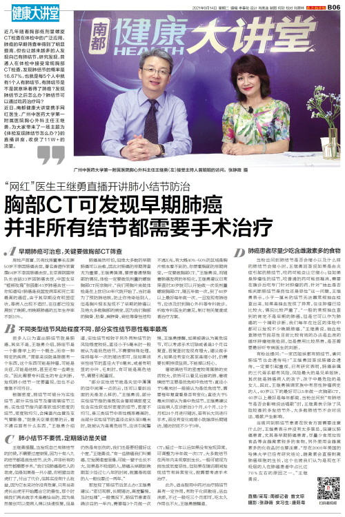胸部CT可发现早期肺癌 并非所有结节都需要手术治疗