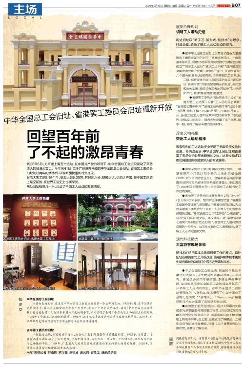 1925年6月,为声援上海五卅运动,在中国共产党的领导下,中华全国总工会组织发动了声势浩大的省港大罢工。今年9月1日,位于广州越秀南路的中华全国总工会旧址、省港罢工委员会旧址经过两年的修缮后,以崭