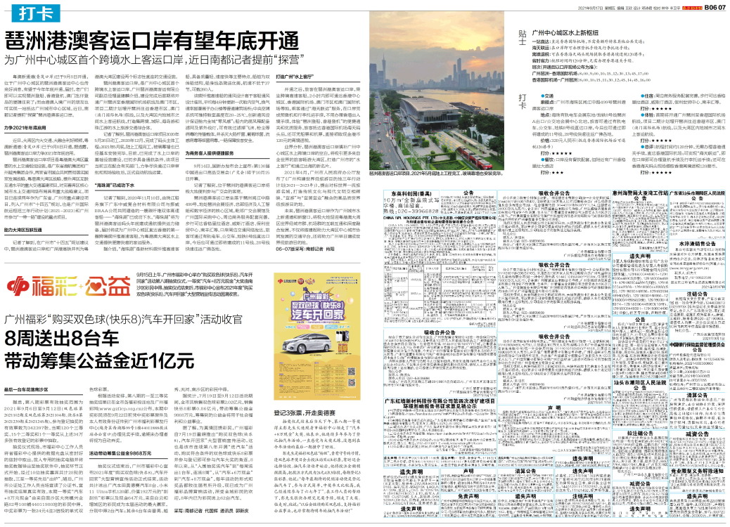 9月15日上午,广州市福彩中心举办“购买双色球(快乐8),汽车开回家”活动第八期抽奖仪式,一等奖“汽车+8万元现金”大奖由南沙区彩民中得。抽奖仪式结束后,市福彩中心宣布2021年度“购买双色球(快