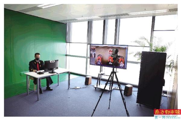 广州互联网法院一名法官通过“YUE”法庭开庭。