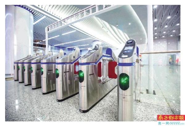 ——进站时,乘客将体验到智慧化的自动售检票系统,实现出行无感过闸,全线的闸机均为人脸识别闸机,支持刷脸进刷脸出。乘客可在十八号线车站的智能客服中心完成人脸注册,与广州地铁App乘车码绑定,当乘客需要转乘到广州地铁其它线路车站时,可使用同一账户的广州地铁App乘车码刷码出闸。