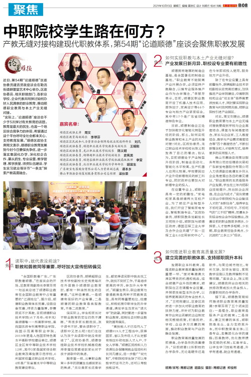 近日,第54期“论道顺德”区政协委员建言资政座谈会在勒流街道耕墨堂艺术中心举办。区政协委员、相关职能部门、各职业学校、企业代表共同探讨如何办好人民满意的职业教育,推动顺德职业教育与本土产业无缝对接
