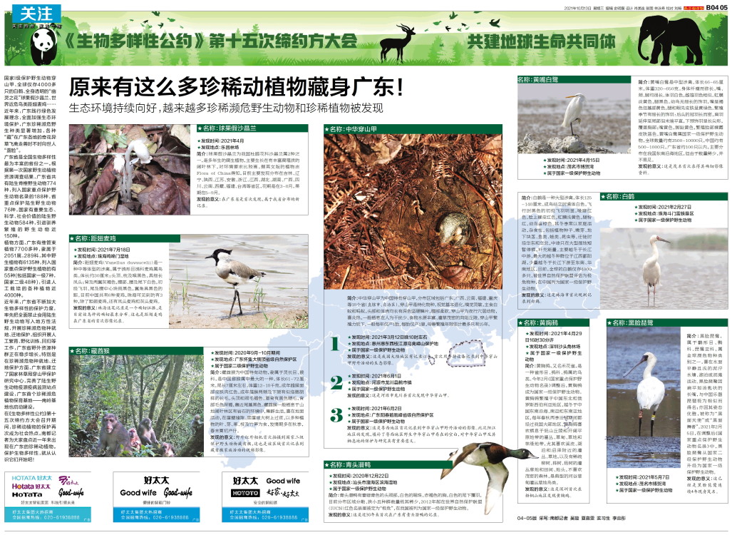 国家I级保护野生动物穿山甲、全球仅存4000多只的白鹤、全身透明的“幽灵之花”球果假沙晶兰、世界近危鸟类距翅麦鸡……近年来,广东践行绿色发展理念,全面加强生态环境保护,广东珍稀濒危野生种类显著增加
