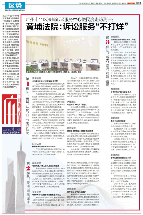 2021年度“广州城市治理榜”的子榜单“司法服务满意度榜”制作期间,南都课题组再次对广州市11家基层法院的诉讼服务中心展开了一次实地调研走访测评。测评从基础设施、信息化建设、多元化服务、创新性诉讼