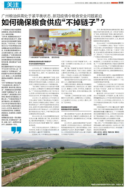 广州是粮油主销区和重要粮油集散地,粮食供需保障压力大,保供任务重。 “近年来,我国粮食综合生产能力稳定在较高水平,但粮食安全在任何时候都不能轻言过关。”10月16日,广州市举办2021年世界粮食