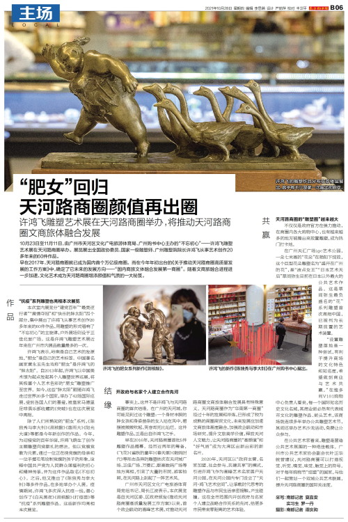 10月23日至11月11日,由广州市天河区文化广电旅游体育局、广州购书中心主办的“不忘初心”——许鸿飞雕塑艺术展在天河路商圈举办。展览展出全国政协委员、国家一级雕塑师、广州雕塑院院长许鸿飞从事艺术