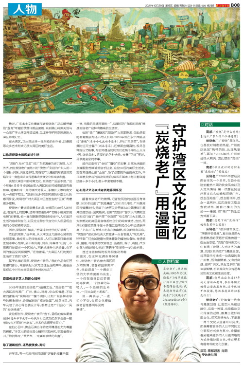 ◎人物档案 炭烧老广,原名胡庆麟;2005年凭《炭烧老广》的毕业设计闯出名堂;2009年获得金龙奖;代表漫画作品有《炭烧老广》《炭烧老广2之sang饮sang食》《炭烧港味》。 最近,广东本土