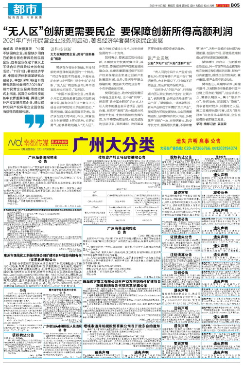 南都讯 记者夏嘉雯 “中国不缺国有企业,而是缺少用自己的钱去冒创新风险的民营企业。国有企业在这个意义上不适合进行风险较大的创新活动。”11月1日,著名经济学者、中国经济体制改革研究会副会长、中国(