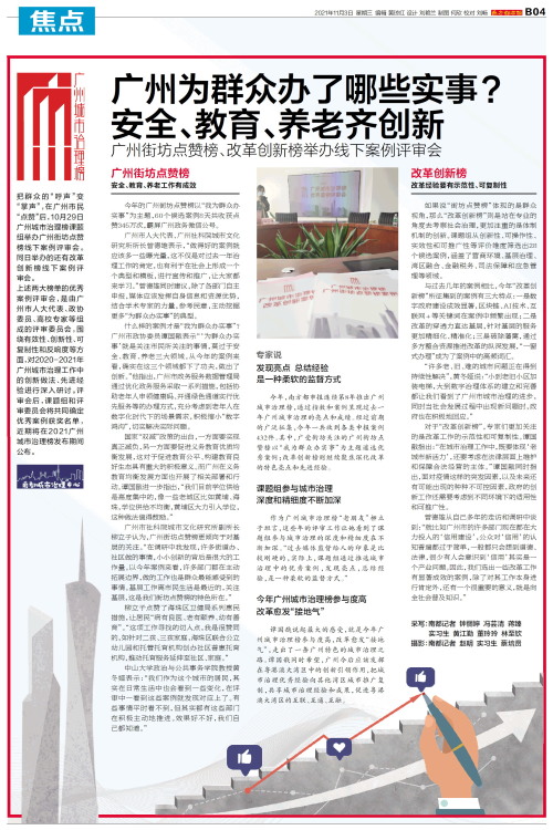 把群众的“呼声”变“掌声”,在广州市民“点赞”后,10月29日广州城市治理榜课题组举办广州街坊点赞榜线下案例评审会。同日举办的还有改革创新榜线下案例评审会。上述两大榜单的优秀案例评审会,是由广州市