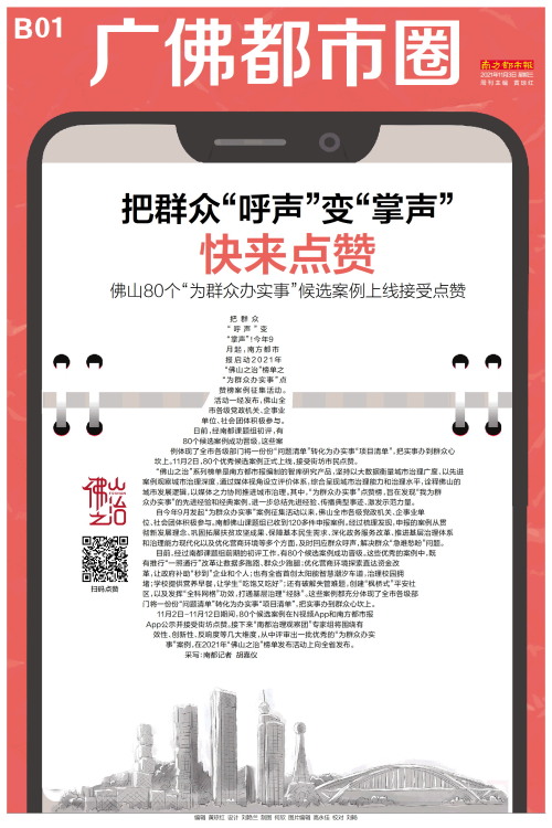 把群众“呼声”变“掌声”!今年9月起,南方都市报启动2021年“佛山之治”榜单之“为群众办实事”点赞榜案例征集活动。活动一经发布,佛山全市各级党政机关、企事业单位、社会团体积极参与。日前,经南都课