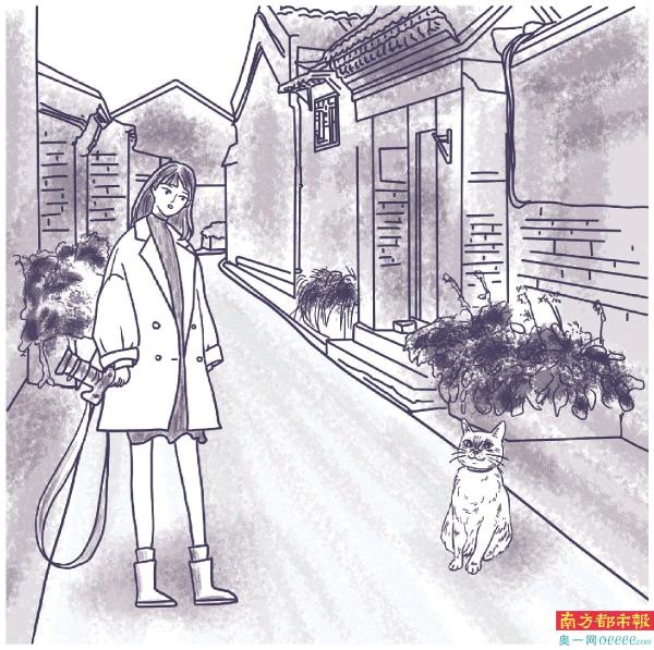 “摄影技巧都用上,一定要拍出最绚丽的景象,”我暗下决心。把三脚架放在胡同口,对焦、构图、定格。画面中,细长而弯曲的胡同消失在暮色中,胡同口是一只白猫,眯缝着眼,几缕胡须随风摇动,轻轻地蹲在矮墙上,它的身旁是一株稀稀疏疏的海棠,在黄昏中显出别样的风姿。太阳已无早晨的浅绛,也无正午刺眼的白光,为了增加视觉张力,我又大费周章。终于,我成功地把这些景色都收入相片中。“挺好的。”我心想。