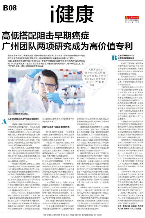 高低搭配阻击早期癌症 广州团队两项研究成为高价值专利