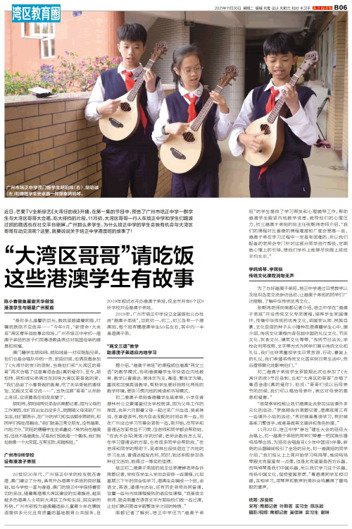 近日,芒果TV全新综艺《大湾仔的夜》开播,在第一集的节目中,预告了广州市培正中学一群学生与大湾区哥哥大合唱、吃大排档的片段。11月初,大湾区哥哥一行人在培正中学和学生们踢波过招的路透也在社交平台刷