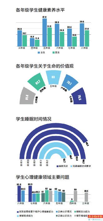 在2021年“读懂中国”国际会议(广州)教育与健康中国专题论坛上,《2020年中小学生命与健康素养调查报告》(下简称《报告》)正式发布并引起关注。报告的数据显示,中小学生睡眠普遍不足,学生在调节情绪、缓解压力和应对焦虑等方面尚存在问题。有专家指出,家长要乐见孩子处于休闲状态,应帮助孩子健康“找乐子”。