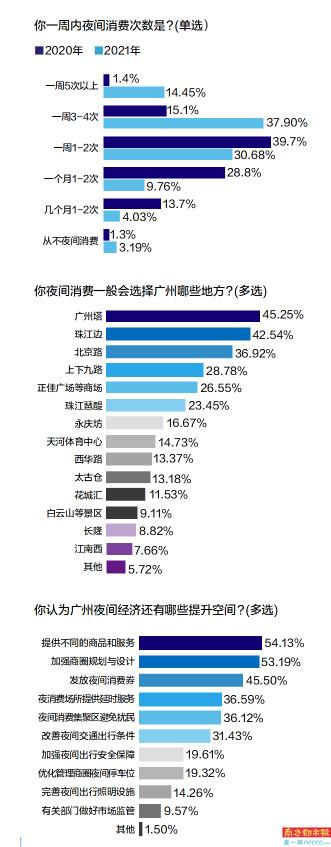 日前,《广州市加快培育建设国际消费中心城市实施方案》正式印发。自今年7月入选全国首批国际消费中心城市试点名单后,这是广州建设国际消费中心城市的又一实质性进展。围绕这一发展目标,广州开拓夜间经济等新消费场景,引领新的消费潮流。为了解广州公众夜间消费行为、体验与期待,助力夜间经济更好发展,推动建设广州国际消费中心城市,南都民调中心于12月8日至14日面向广州居民和来穗游客发起问卷调查,并与2020年课题组实施的同题调查进行比较,于近日发布《2021广州夜消费调查报告》。
