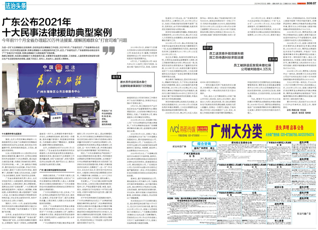 为进一步扩大法律援助社会知晓率,总结和宣传法律援助工作经验,2021年5月,广东省司法厅、广东省律师协会启动2019-2020年度全省民事、刑事法律援助十大典型案例评选工作。近日,广东省司法厅、广