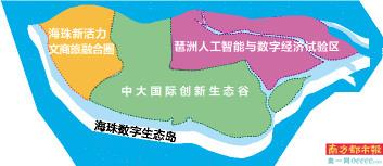 海珠区的数字元素愈加浓厚,将全部辖区定位“海珠数字生态岛”,一面是面向未来的数字产业,一面是宜居宜业的生态环境。海珠区规划了琶洲人工智能与数字经济试验区、中大国际创新生态谷和海珠新活力文商旅融合圈。