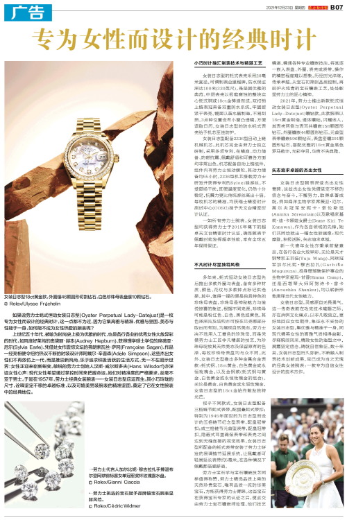 2021年,劳力士推出新款蚝式恒动女装日志型(Oyster Perpetual Lady-Datejust)镶钻款。此款腕表以18ct黄金制造,通体镶钻,闪耀迷人,其表壳两侧与表耳共镶嵌158颗圆形钻石,外圈镶嵌44颗圆形钻石。元首型表带镶嵌596颗钻石。表盘密镶291颗圆形钻石,搭配优雅的18ct黄金黑色罗马数字,光彩夺目,华贵不失典雅。
