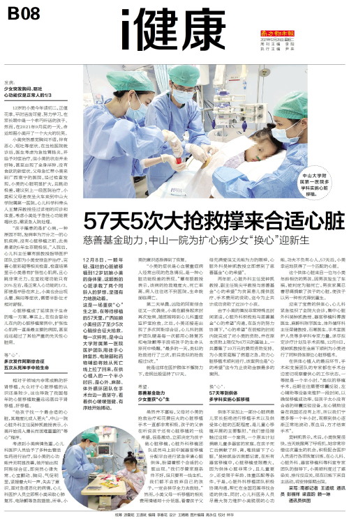 12月8日,一颗年轻、强壮的心脏被移植到12岁姑娘小美的身体里,这颗新的心脏承载了两个同龄人的梦想,坚强有力地跳动着。 这是一场重获“心”生之旅,在等待移植的57天里,广西姑娘小美经历了至少5次