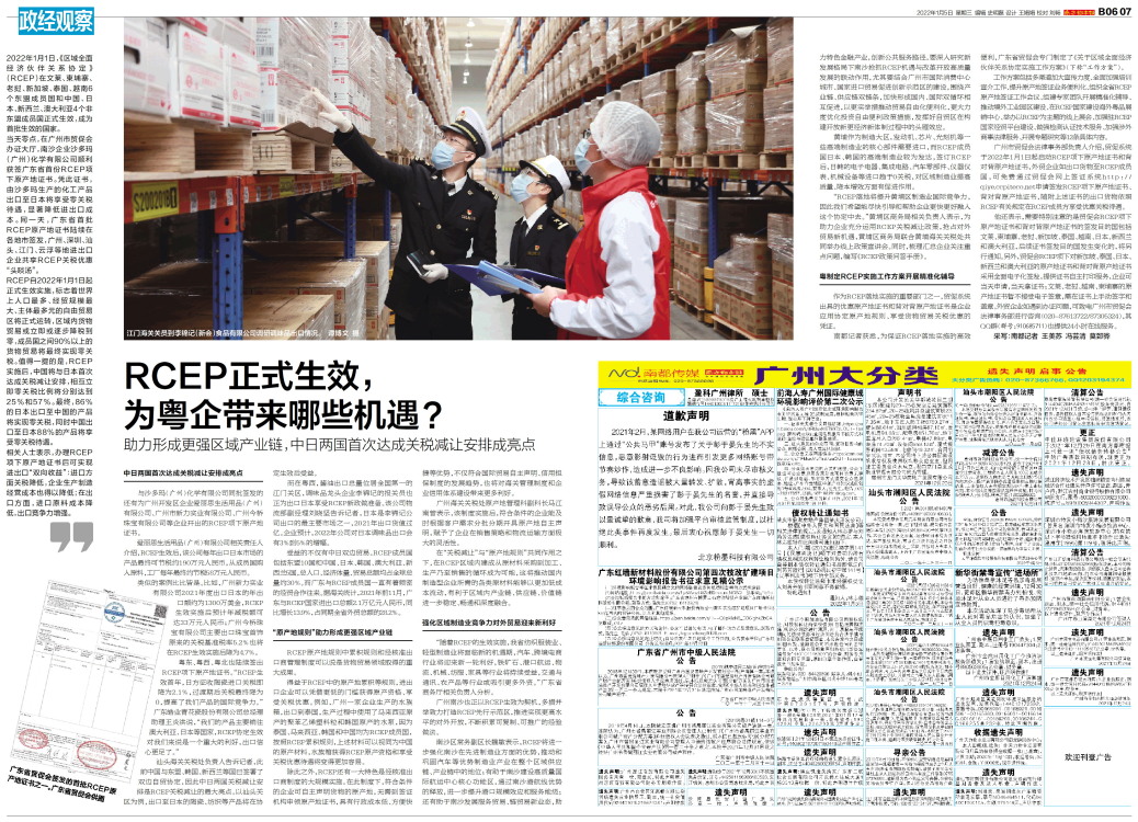 2022年1月1日,《区域全面经济伙伴关系协定》(RCEP)在文莱、柬埔寨、老挝、新加坡、泰国、越南6个东盟成员国和中国、日本、新西兰、澳大利亚4个非东盟成员国正式生效,成为首批生效的国家。 当