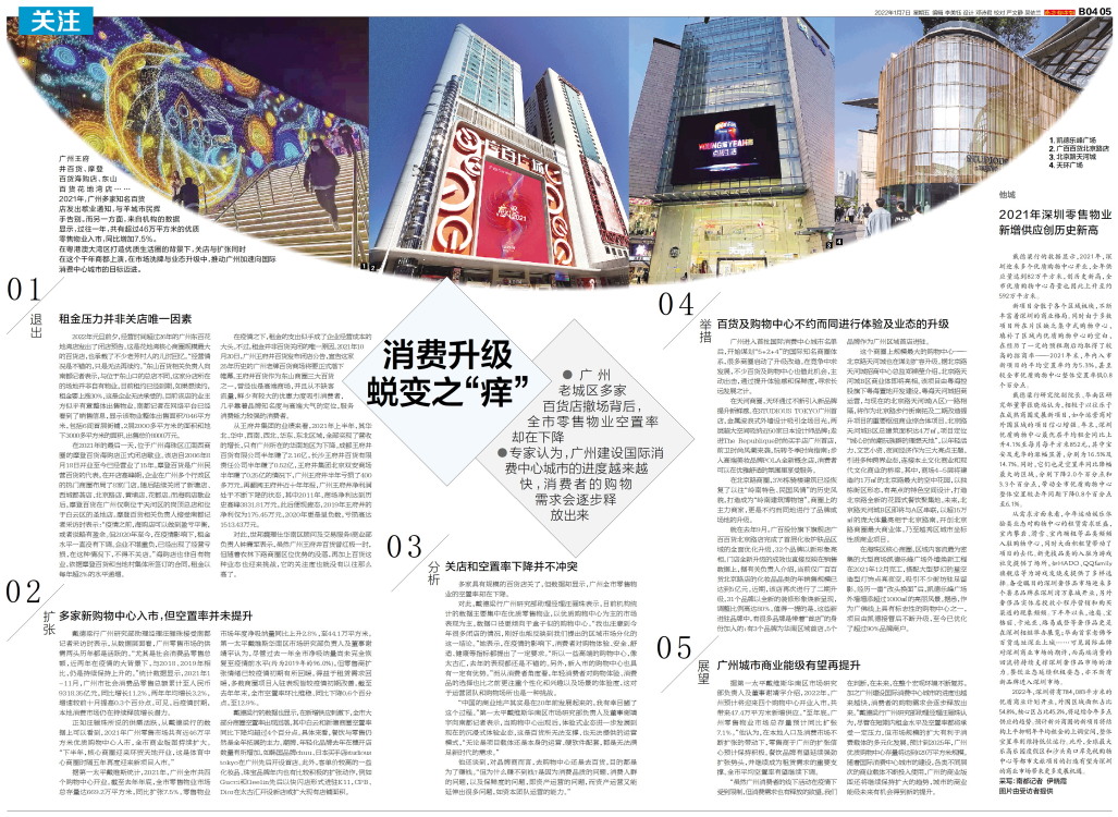 1.凯德乐峰广场 2.广百百货北京路店 3.北京路天河城 4.天环广场 广州王府井百货、摩登百货海购店、东山百货花地湾店……2021年,广州多