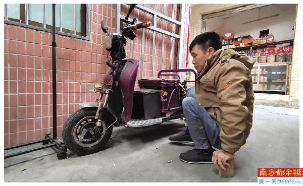那辆进货的三轮车搁在出租屋后,车上落了一层灰。“已经有一段时间没进货了。”江金凤拍拍只穿了单薄牛仔裤的双腿。因为双腿无法正常伸屈,他“没办法穿更多裤子,再冷只能套一条”,“没生意,冷的时候在外面实在受不了”。