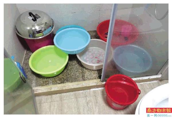 业主王女士告诉记者,她住在小区已经10年了,每次停水都亲身经历,为此也投诉过很多次。“因为害怕停水,我们家都产生了应激反应,网购了好几个18升的饮用水桶,灌满了水长期储存在家里。”当天上午,记者在王女士的家中看见了这几个装满水的饮用水桶。此外,卫生间里的大桶、小桶及脸盆都储好水放在一旁,甚至厨房里的锅碗盆都派上了用场。
