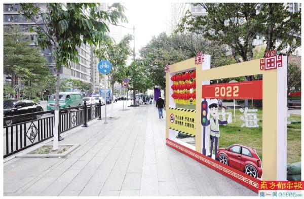 广钢新城道路两旁已不见违停踪影,多处设有宣传文明停车标志。 南都记者 黎湛均 摄