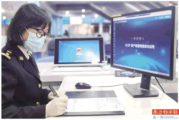广州海关所属天河海关关员在签发RCEP原产地证书。 严慧卿 摄