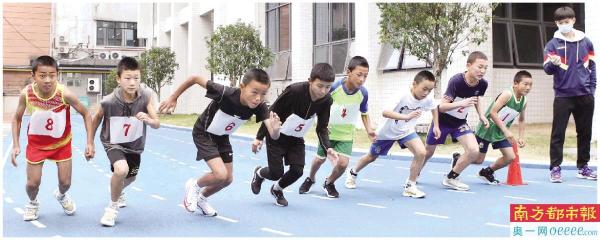 西藏林芝体校赴粤冬训运动员正在进行赛跑。 (通讯员 粤体彩供图)