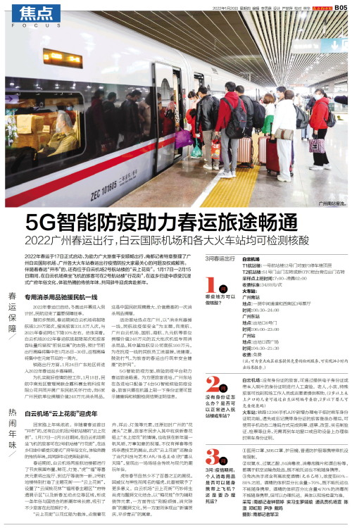 2022年春运于17日正式启动,为助力广大旅客平安顺畅出行,南都记者特意整理了广州白云国际机场、广州各大火车站春运出行疫情防控大家最关心的问题及权威解答。 伴随着春运“开市”的,还有位于白云机场