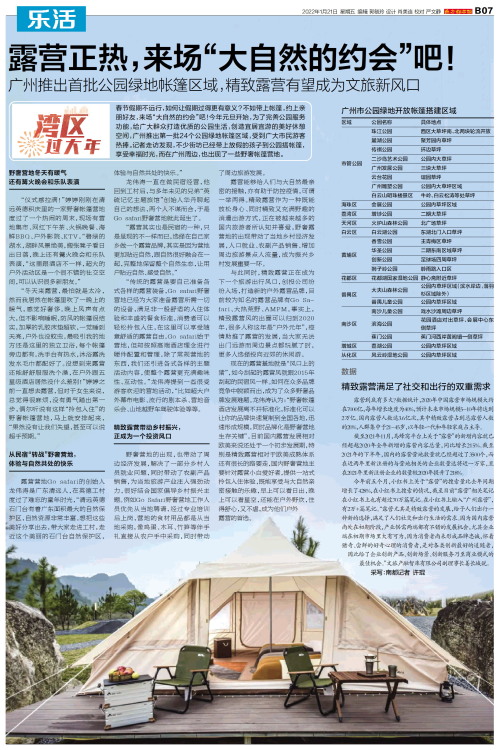 春节假期不远行,如何让假期过得更有意义?不如带上帐篷,约上亲朋好友,来场“大自然的约会”吧!今年元旦开始,为了完善公园服务功能,给广大群众打造优质的公园生活,创造宜居宜游的美好休憩空间,广州推出第