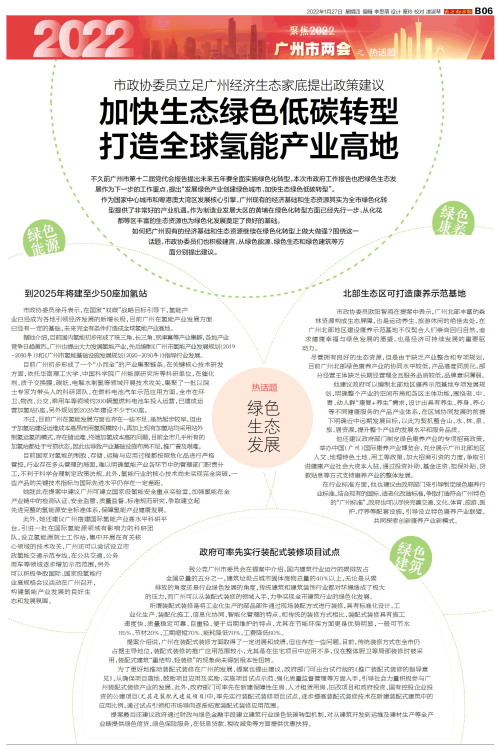不久前广州市第十二届党代会报告提出未来五年要全面实施绿色化转型,本次市政府工作报告也把绿色生态发展作为下一步的工作重点,提出“发展绿色产业创建绿色城市,加快生态绿色低碳转型”。 作为国家中心城市