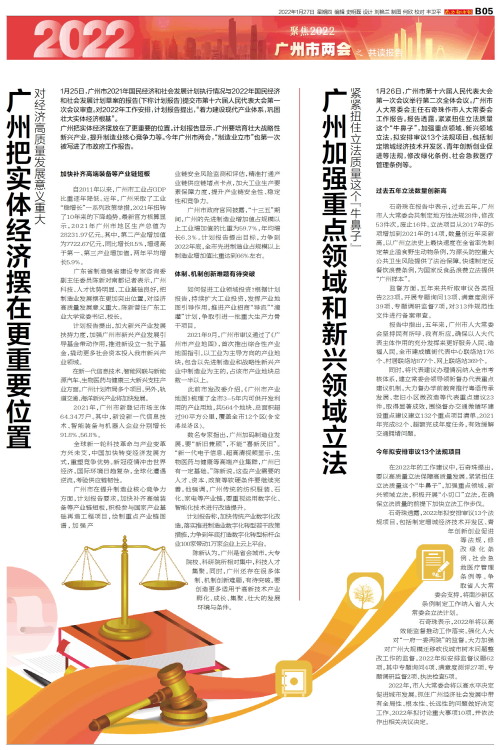 广州加强重点领域和新兴领域立法