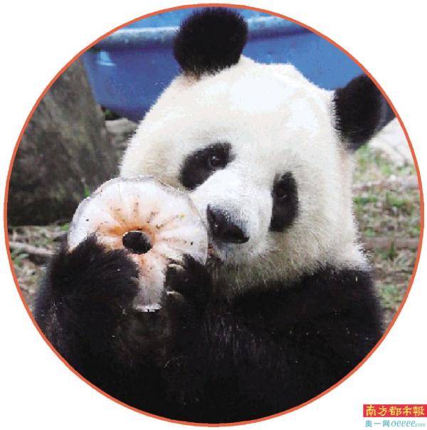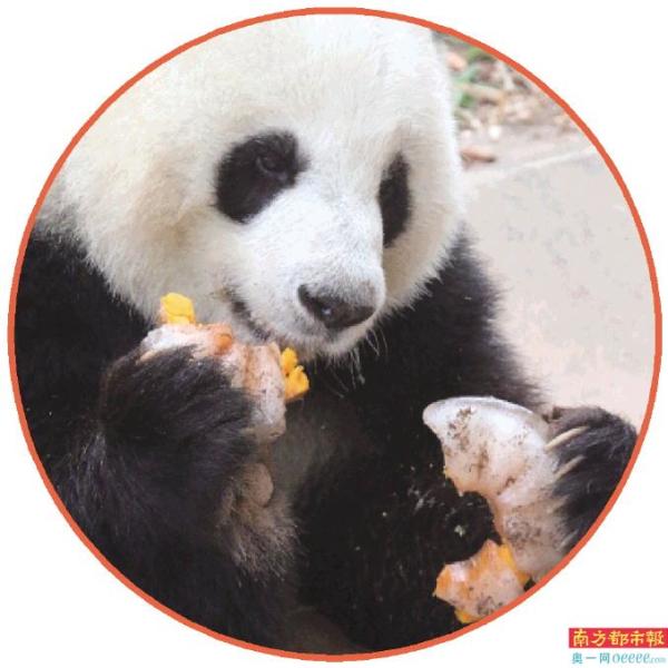 一大早,广州动物园两只大熊猫就收到了各种“冰冰”的美食和丰富的“玩具”。藏在冰块里的南瓜、玉米、竹笋,完全难不倒这两只聪明的“真墩墩”。不一会儿功夫,馆舍的美食就被扫荡一空。