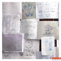 广美昌岗校区设计大楼705工作室,书柜与桌面上一张张设计草图排布开来,这里是冰墩墩“出生”的地方。从最初的冰糖葫芦,到最终的“冰墩墩”,团队共画出上万张草图,大小修改不计其数。