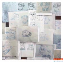在广美设计大楼705工作室,书柜上一张张设计草图排布开来。