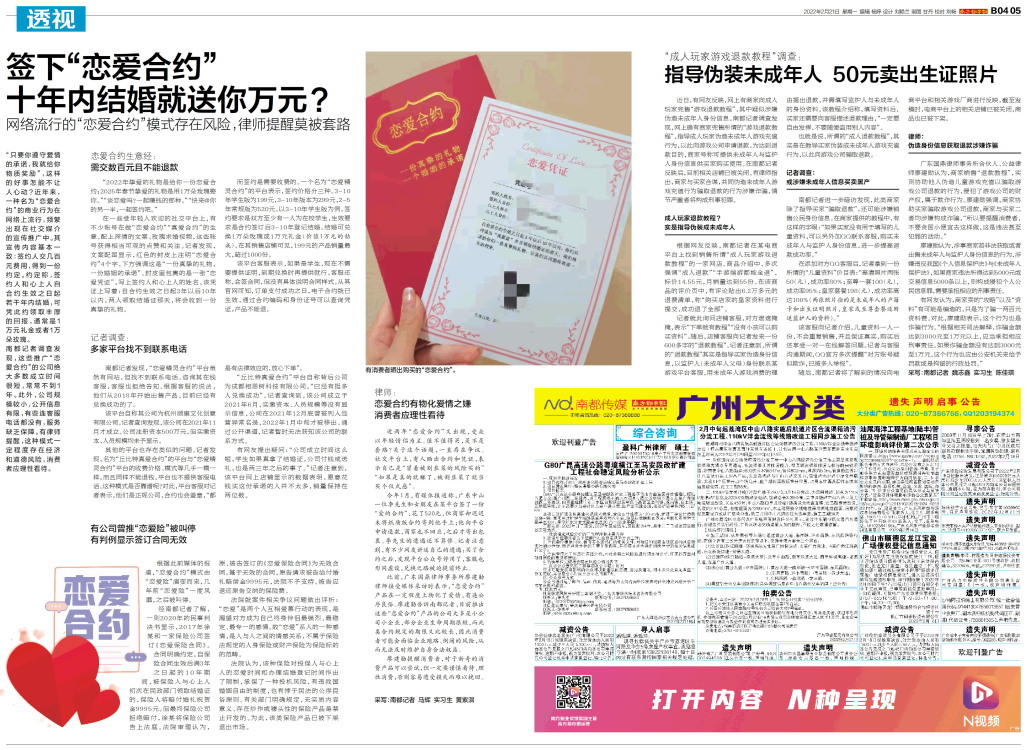 “只要你遵守爱情的承诺,我就给你物质奖励”,这样的好事怎能不让人心动?近年来,一种名为“恋爱合约”的商业行为在网络上流行,频繁出现在社交媒介的宣传推广中。其宣传内容基本一致:签约人交几百元费用,得