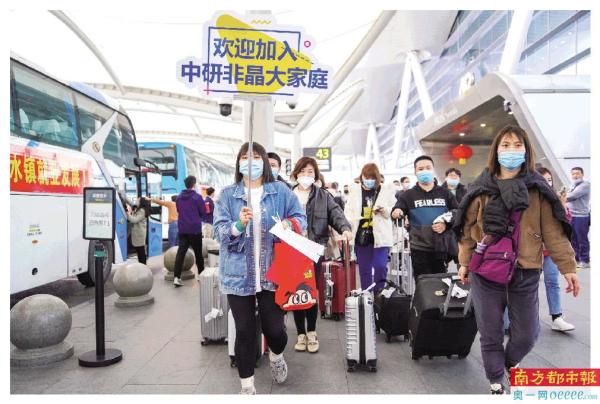 这种势不可挡的“开门红”气象,并不仅仅存在于佛山个别企业。位于南海区里水镇的中研非晶科技股份有限公司(以下简称:中研非晶)是华南地区最大的生产非晶纳米晶磁性材料的企业。2月16日下午,跨越1680公里,中研非晶“复工专机”搭载150名员工顺利抵达广州白云机场,再由里水镇政府安排专车返回企业。