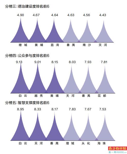 测评结果显示,白云、越秀、黄埔区“公众参与度”得分分别以9.13分、9.01分、8.15分排名全市前三。