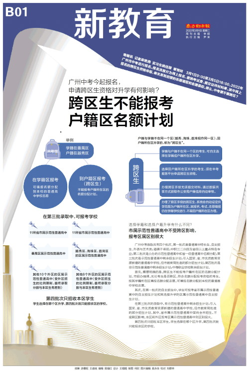 南都讯 记者梁艳燕 实习生姚佳萌 谢楚如 3月1日9:00至3月5日18:00,2022年广州市中考进行报名。报名流程分为网上报名、缴纳考试费、提交证件材料等,其中网上报名的跨区生资格申报,将关系